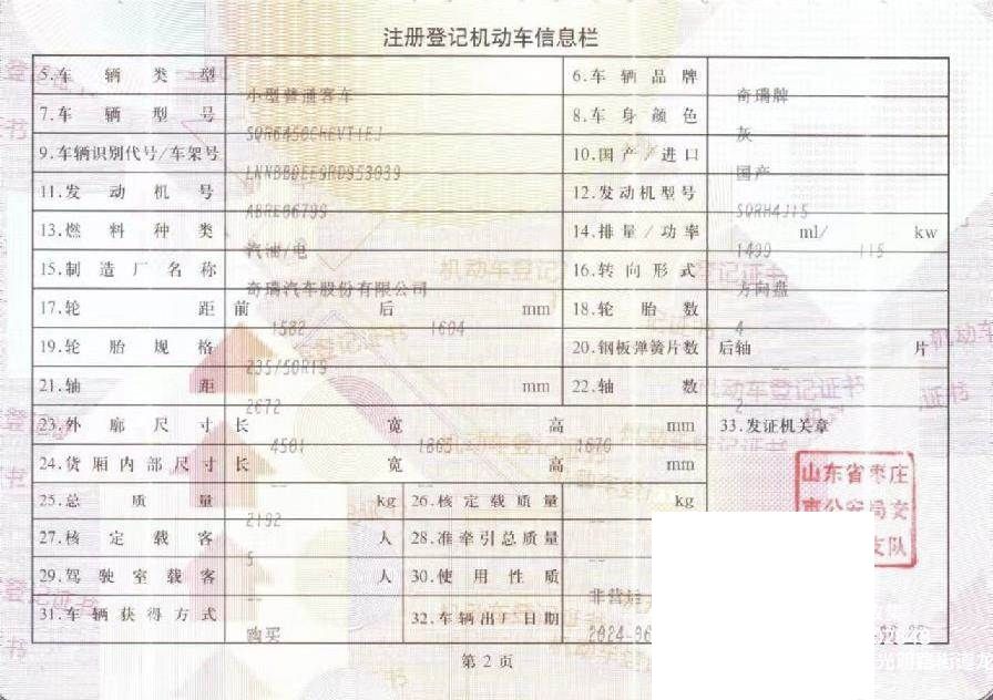 初次登记日期 2024-06-22 车辆名称 奇瑞风云,奇瑞