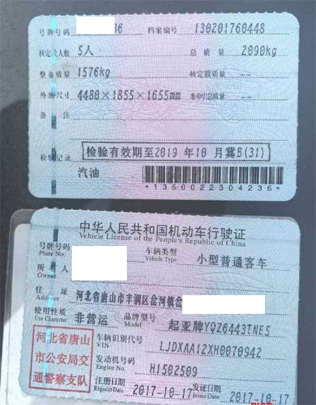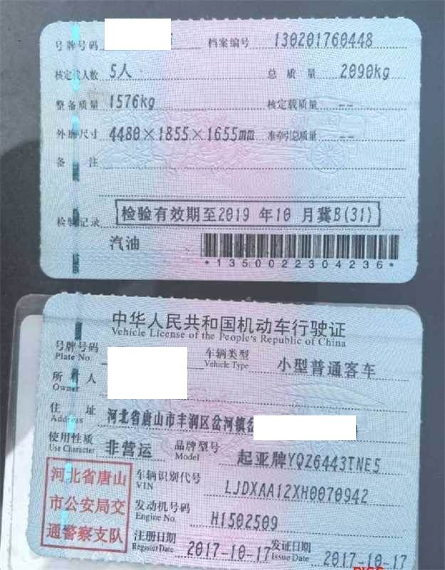 车辆归属地 河北省唐山市 车辆停放仓库 河北省廊坊市廊坊市