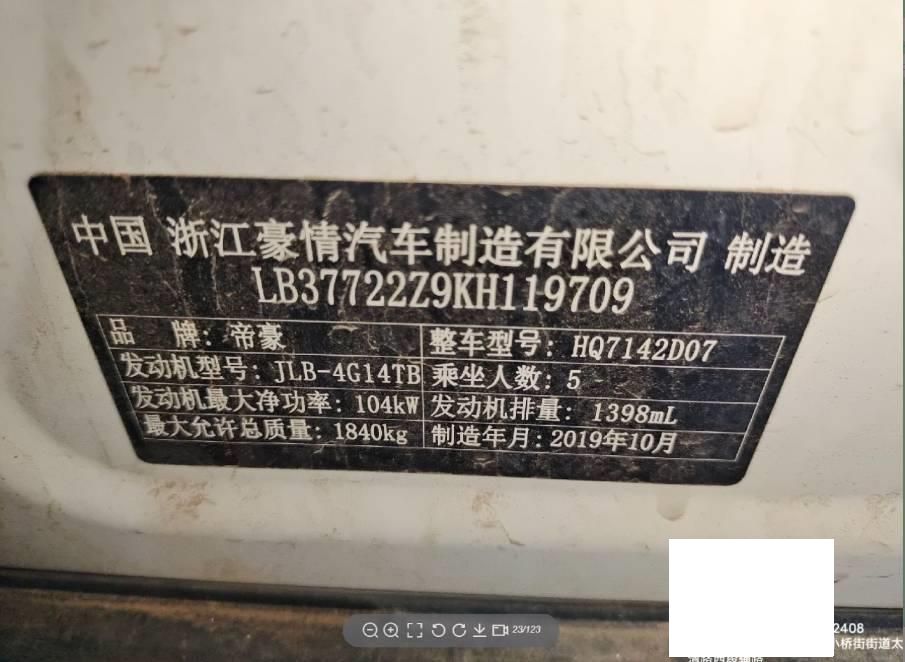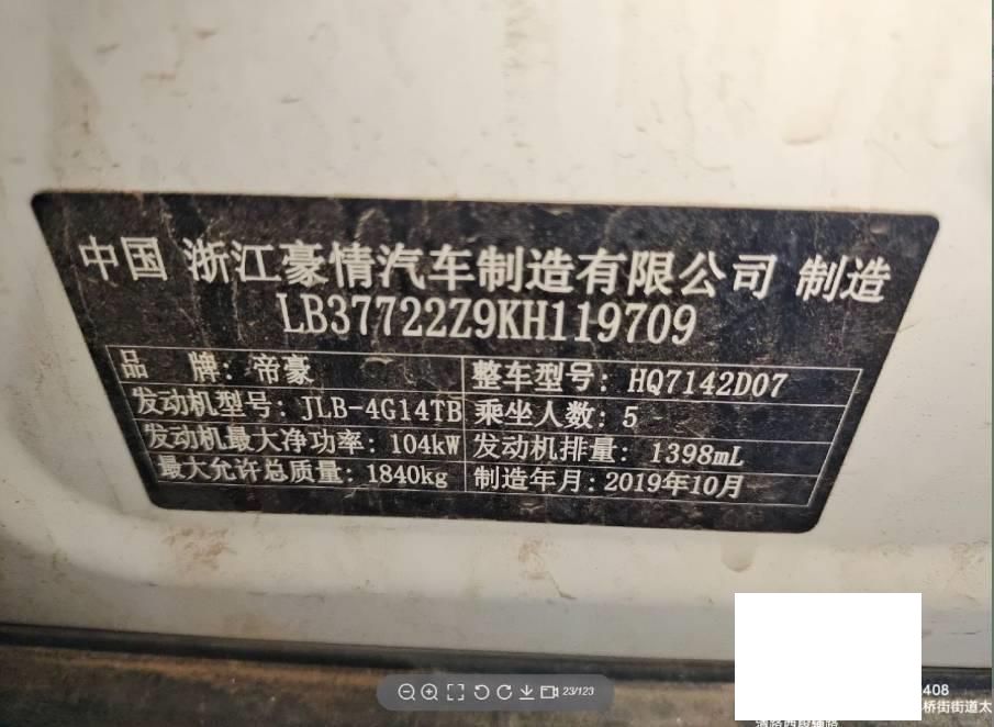 初次登记日期 2019-11-13 车辆名称 吉利汽车 帝豪GS