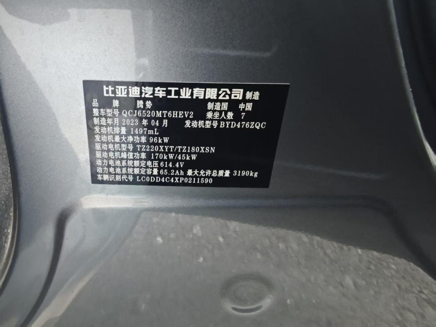 初次登记日期 2023-06-08 车辆名称 腾势牌