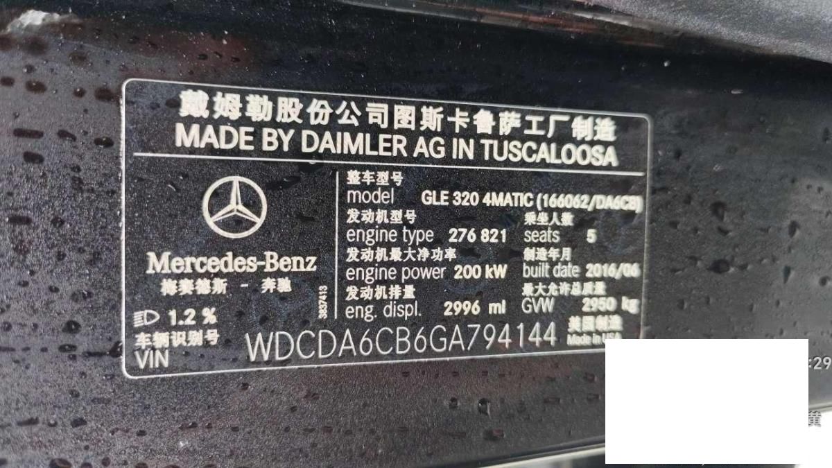 初次登记日期 2016-10-26 车辆名称 奔驰GLE