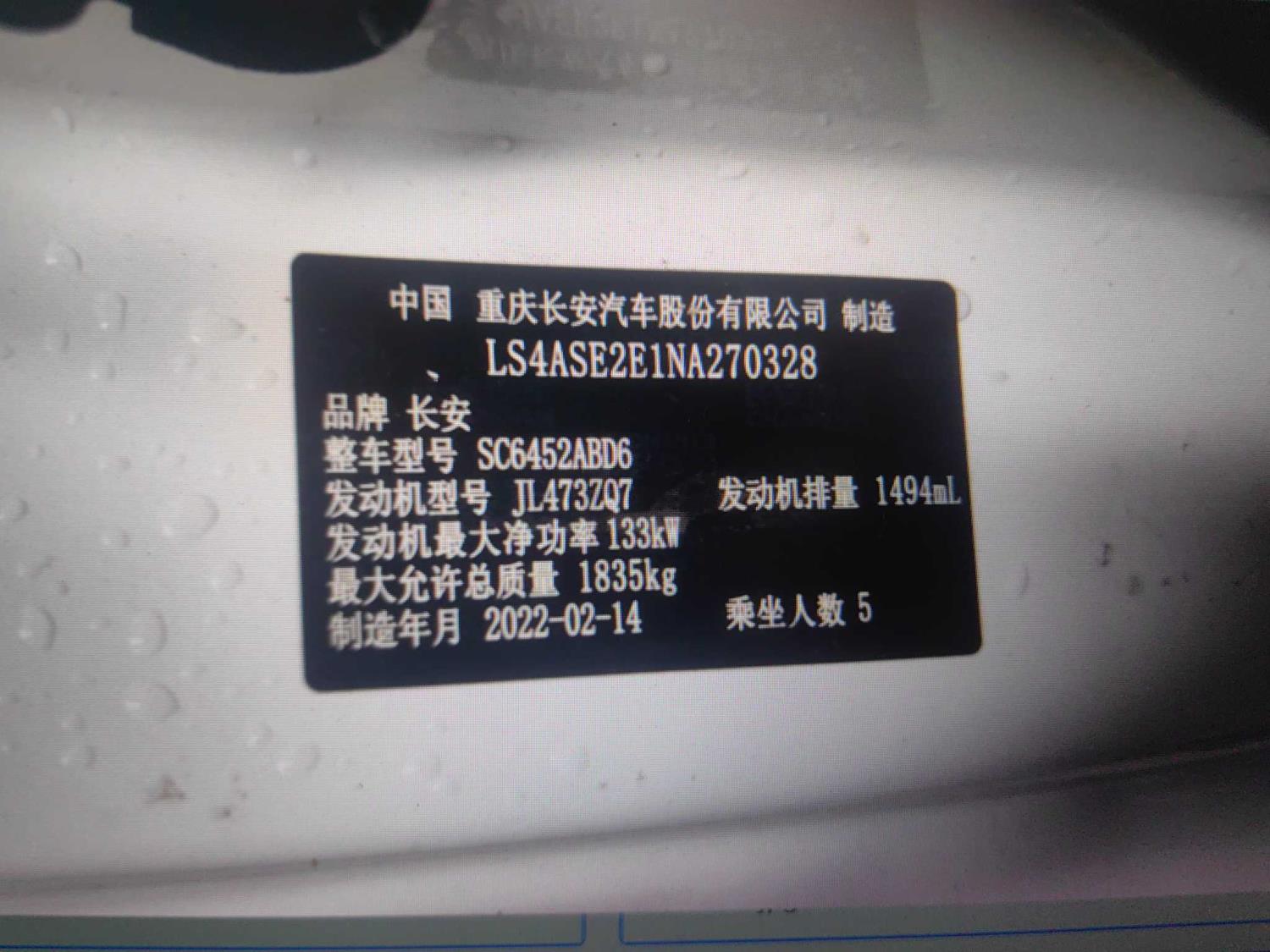 车牌号 桂****** 品牌 长安