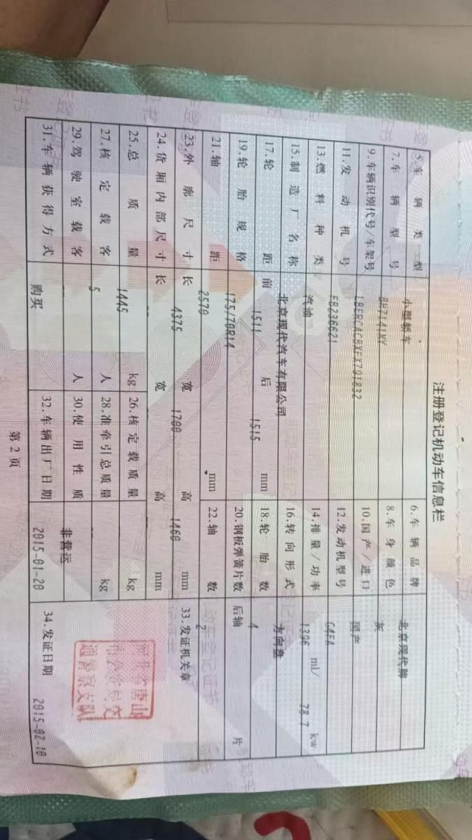 初次登记日期 2015-02-10 车辆名称 现代 瑞纳