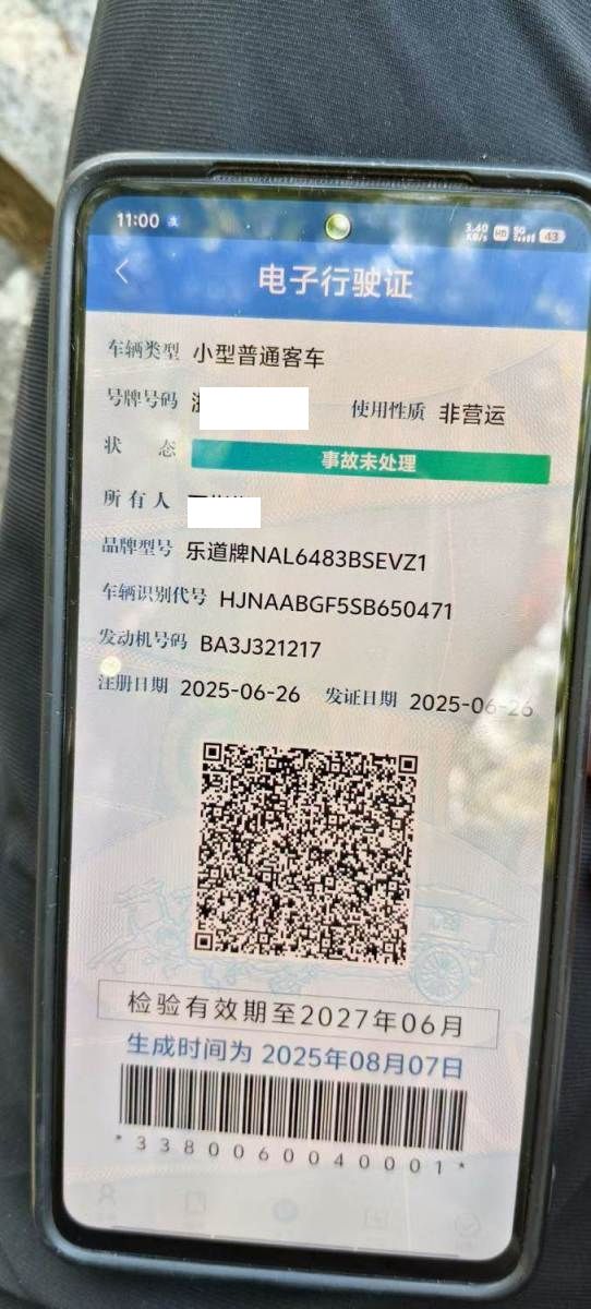 初次登记日期 2025-06-26 车辆名称 乐道牌
