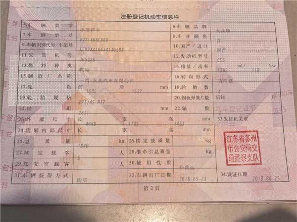 初次登记日期 2018-06-25 车辆名称 大众 速腾