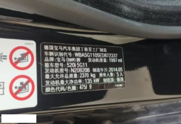初次登记日期 2014-09-22 车辆名称 宝马5系(进口)