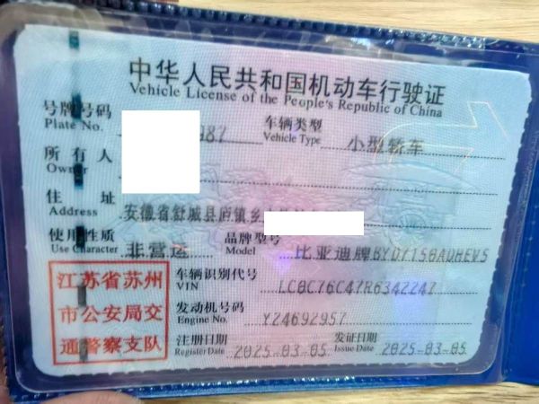 车牌号 苏****** 品牌 比亚迪