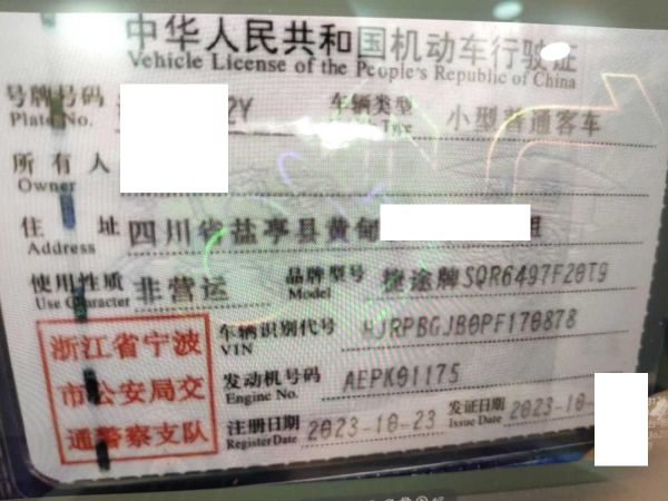 车辆归属地 浙江省宁波市 车辆停放仓库 浙江省宁波市宁波市