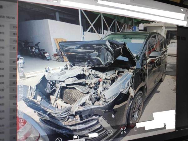 ,前部受损,气囊已爆,寻残处理
