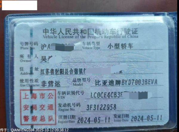 车牌号 沪****** 品牌 比亚迪