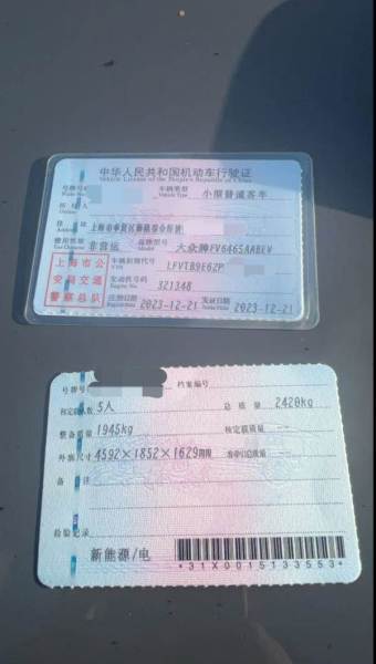初次登记日期 2023-12-21 车辆名称 大众 ID