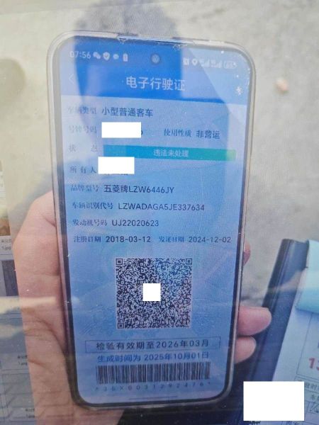 初次登记日期 2018-03-12 车辆名称 五菱汽车 五菱荣光V
