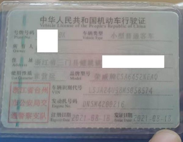 车牌号 浙****** 品牌 荣威