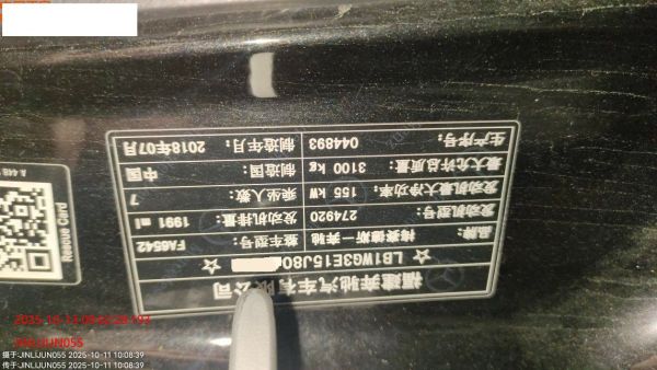 底盘号码 LB1WG3E15J8044893 变速箱类型 手自一体