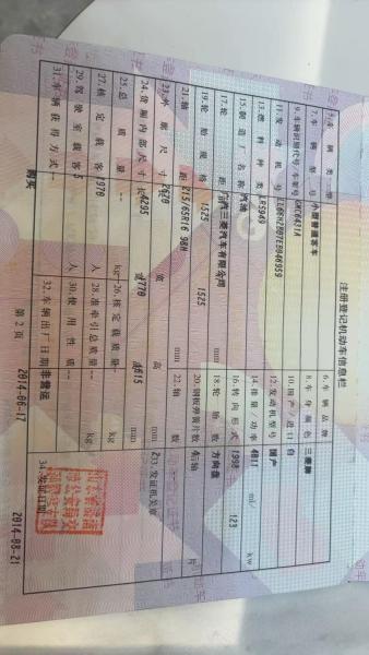 初次登记日期 2014-08-21 车辆名称 三菱 劲炫ASX