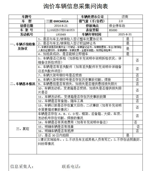 车架号是否受损 使用性质 非营运