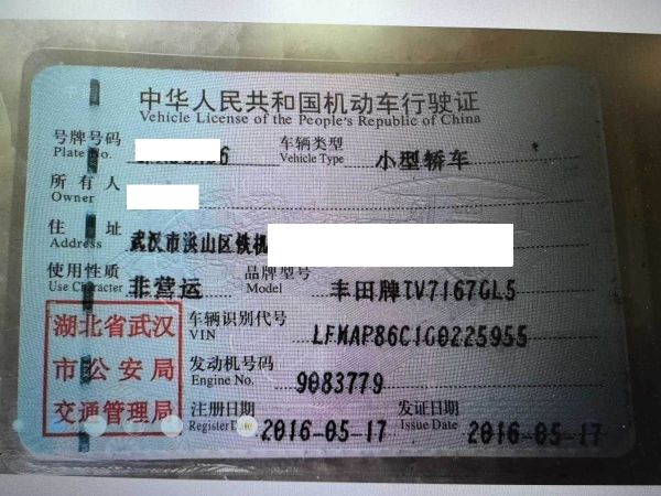 车牌号 鄂****** 品牌 丰田