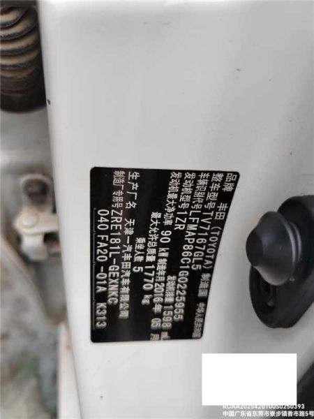 初次登记日期 2016-05-17 车辆名称 丰田 卡罗拉