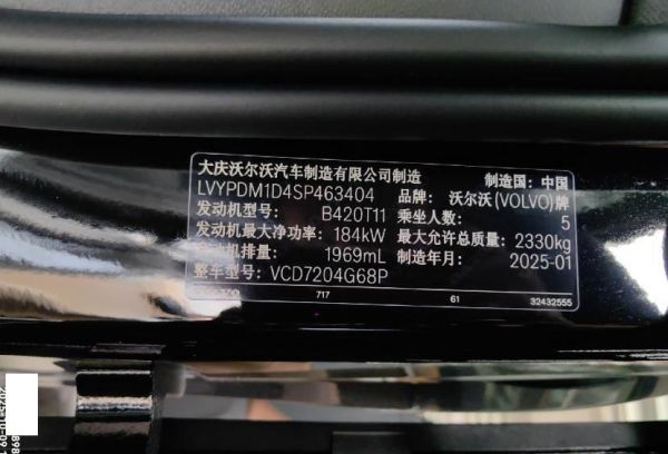 初次登记日期 2025-07-29 车辆名称 沃尔沃S90