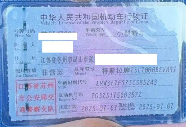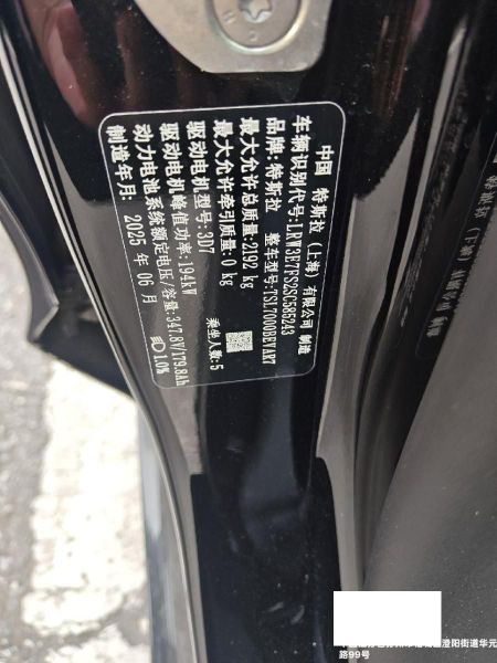 初次登记日期 2025-07-07 车辆名称 特斯拉 Model
