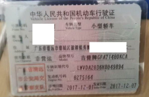 车辆归属地 广东省清远 车辆停放仓库 广东省广州市广州市