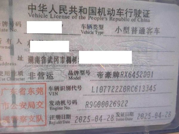 车辆归属地 广东省东莞市 车辆停放仓库 广东省东莞市东莞市