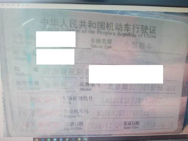 初次登记日期 2018-12-26 车辆名称 北汽新能源