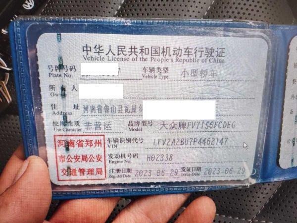 初次登记日期 2023-06-29 车辆名称 大众 速腾