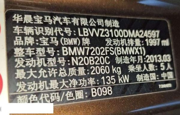 初次登记日期 2013-05-07 车辆名称 宝马X1