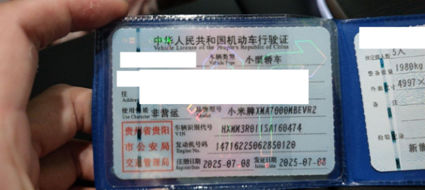 初次登记日期 2025-07-08 车辆名称 小米汽车
