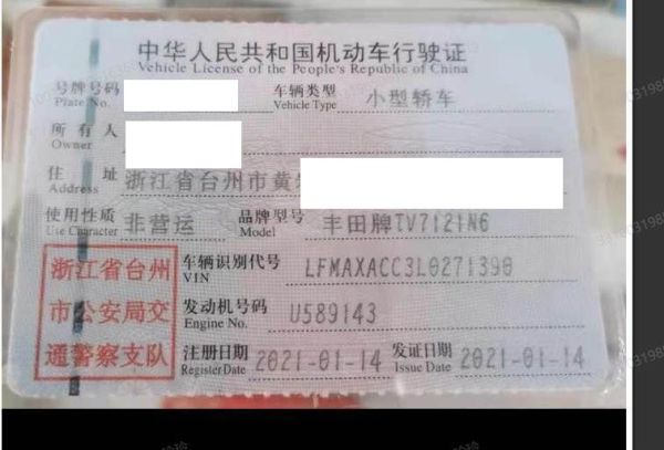 车牌号 浙****** 品牌 丰田