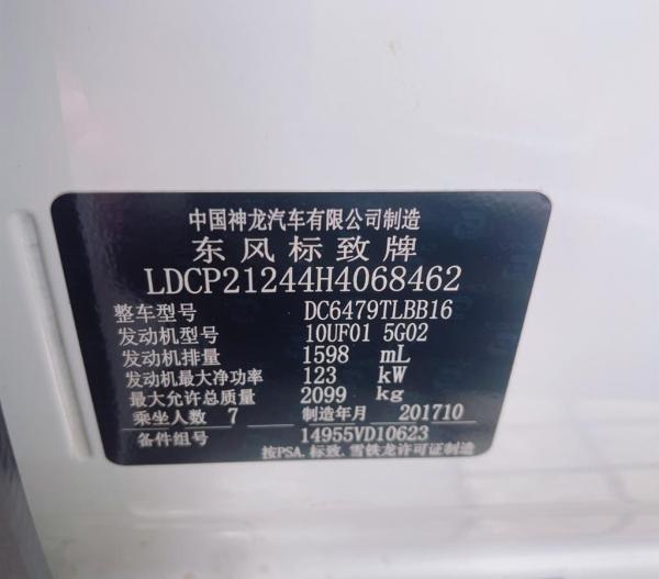初次登记日期 2017-11-15 车辆名称 标致5008