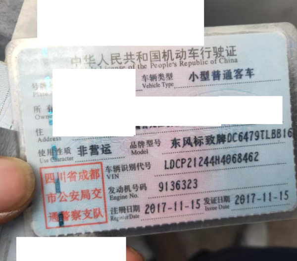车牌号 川****** 品牌 东风标致