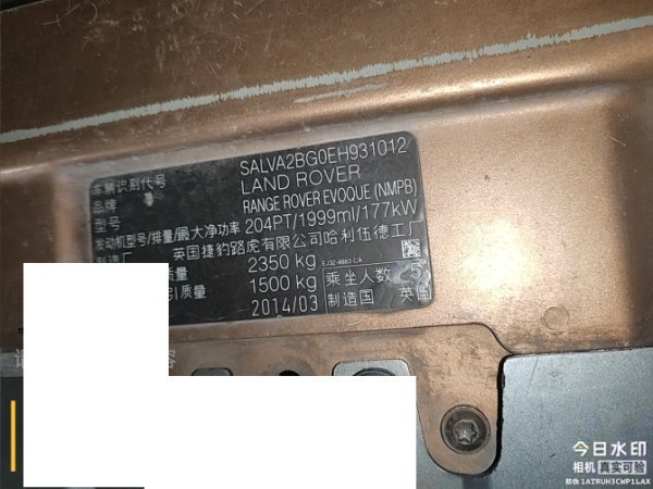 底盘号码 SALVA2BG0EH931012 变速箱类型 手自一体