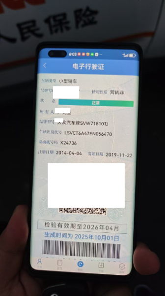 车牌号 皖****** 品牌 大众