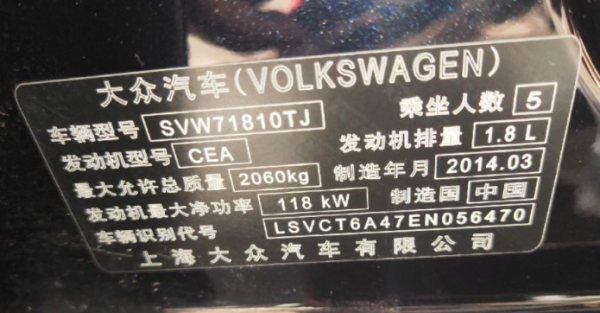 初次登记日期 2014-04-04 车辆名称 大众 帕萨特