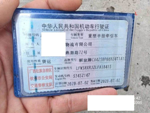 初次登记日期 2020-07-02 车辆名称 解放 解放J6(P6)