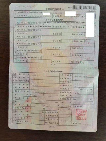 车架号是否受损 使用性质 非营运
