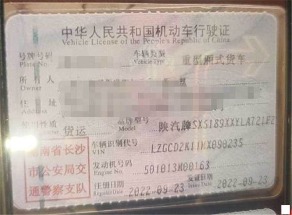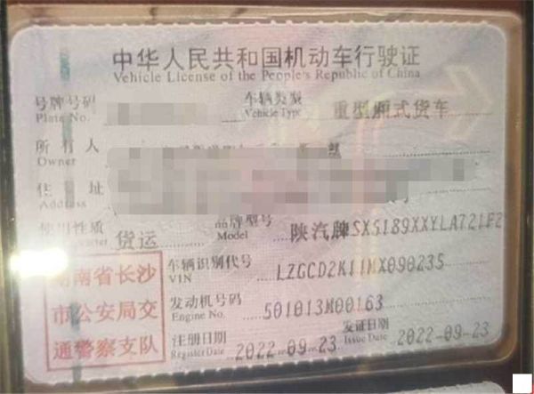 初次登记日期 2022-09-23 车辆名称 陕汽牌