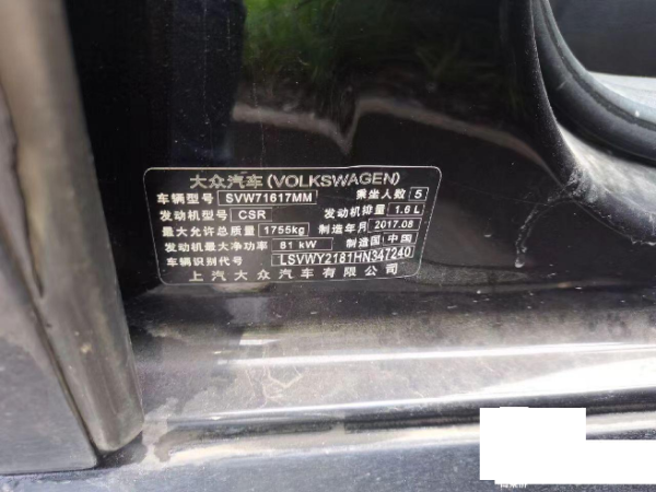 初次登记日期 2017-12-04 车辆名称 大众 朗逸