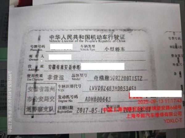 车牌号 皖****** 品牌 奇瑞