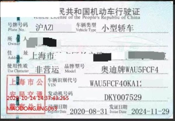 车牌号 沪****** 品牌 奥迪