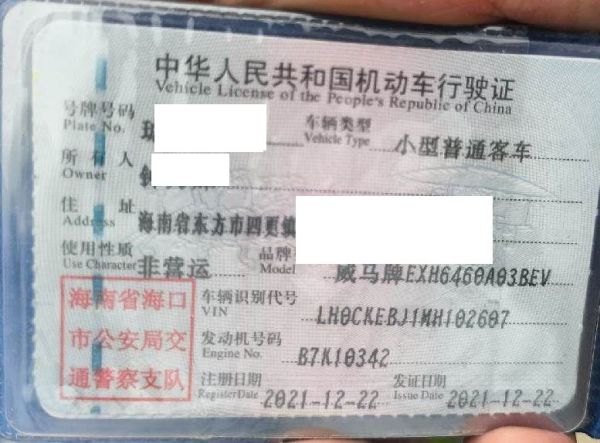 初次登记日期 2021-12-22 车辆名称 威马汽车