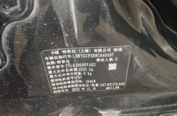 初次登记日期 2022-11-25 车辆名称 特斯拉 Model