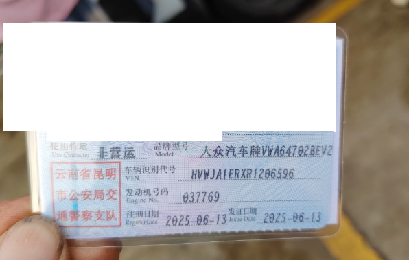 初次登记日期 2025-06-13 车辆名称 大众 与众