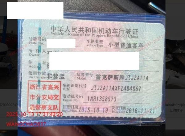 初次登记日期 2015-10-19 车辆名称 雷克萨斯