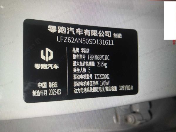 初次登记日期 2025-03-12 车辆名称 零跑汽车