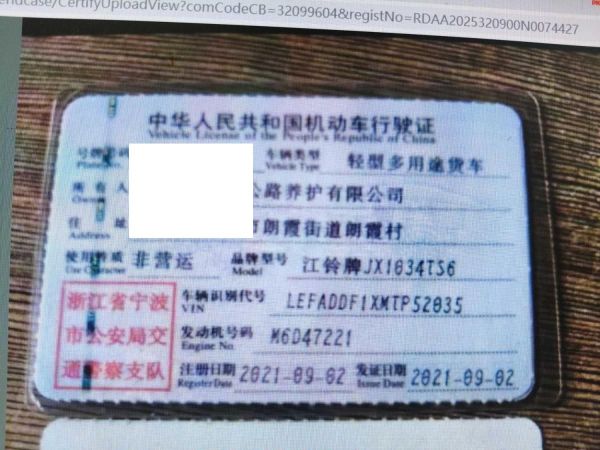 车辆归属地 浙江省宁波市 车辆停放仓库 浙江省余姚市余姚市