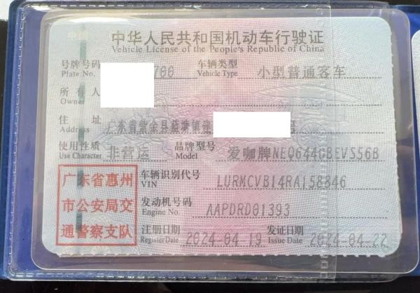 车辆归属地 广东省惠州 车辆停放仓库 广东省惠州市惠州市