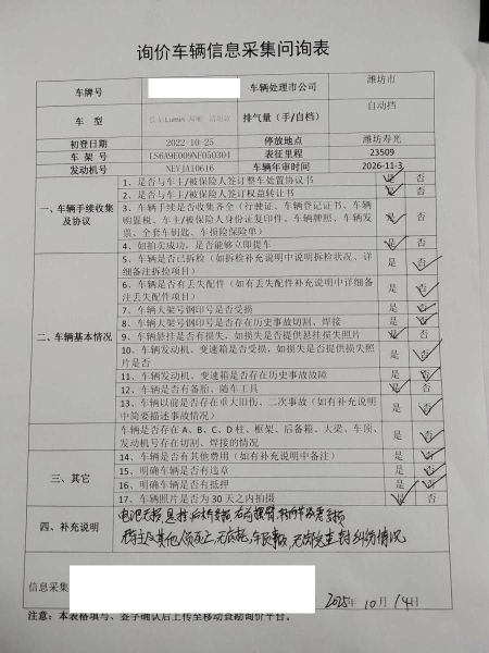 车架号是否受损 使用性质 非营运